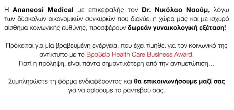 Ananeosi-Medical-Δωρεάν Γυναικολογική Εξέταση Δωρεάν Γυναικολογική Εξέταση Ονοματεπώνυμο* Όνομα Επώνυμο Email* Τηλέφωνο*Θέλω να ενημερώνομαι* Ναι Όχι Μπορείτε να λαμβάνετε ενημερώσεις με email ή και sms για τα νέα και τις προσφορές. Οι ενημερώσεις μπορεί να είναι από 1 ως 3 φορές το μήνα το πολύ.EmailThis field is for validation purposes and should be left unchanged. Δ This iframe contains the logic required to handle Ajax powered Gravity Forms. Συνέχεια... Share FacebookTwitterViberWhatsApp